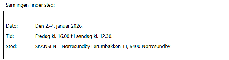 Trænerteamet har udtaget DIG til Årgangssamlingen for de jyske klubber, som afholdes i weekenden uge 1 i Nørresundby